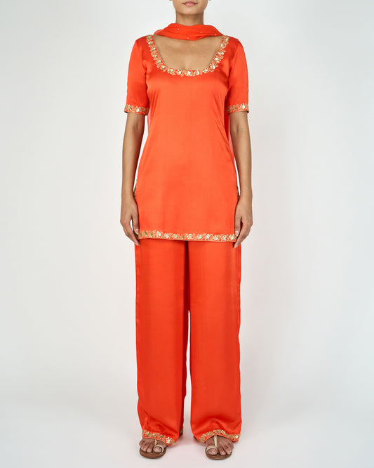 Embellished Kurta Set (Orange)